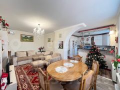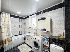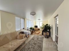 По всему дому натяжные потолки, кроме кухни-гостиной, у которой гипсокартонный потолок.