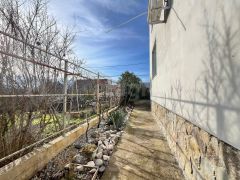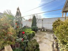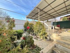 Забор комбинированный, выполнен из дерева и сетки рабицы. На участке растут: виноград, инжир, слива, черешня, малина, абрикосы.
