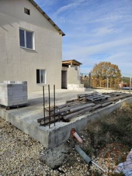 Площадь дома: 150 м² (свободная планировка — без внутренней отделки идеально для реализации своих идей!)Участок: 12 соток, ровный, правильной формы, полностью огороженЭтажность: 2 этажа + монолитный фундамент для будущей кухни/террасыМатериал стен: крымский известняк — очень крепкий, экологичный, с отличной гидроизоляцией по всему периметруПерекрытия: железобетонныеКрыша: естьКоммуникации: