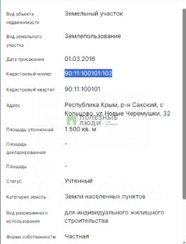 Кадастровый номер участка:90:11:100101:102