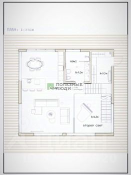 1й этаж: две зоны гостиной; кухня; холл; санузел.