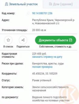 Продаётся земельный участок 2 га (земли сельскохозяйственного назначения для ведение личного подсобного хозяйства на полевых участках) в районе Аблямитского моста (Черноморский район).