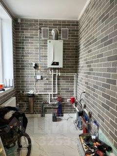 Дом площадью 100 квадратных метров построен из ракушечника на ленточном фундаменте с монолитной плитой. Внутри все новое, никто не жил. Отопление — двухконтурный турбированный котел с теплым водяным полом и радиаторами.