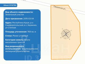 Продается земельный участок в селе Украинка (Симферополь) улица Овражная.
