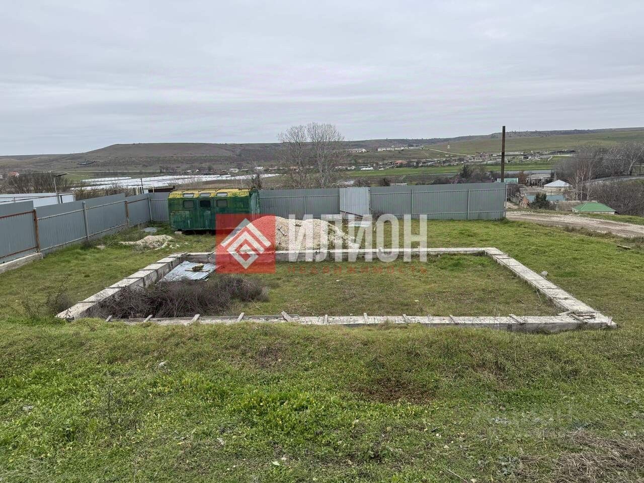 - На участке стоит железный вагончик и есть ленточный фундамент 6х10 (планировался под баню)