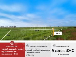 Участок площадью 9 соток под ИЖС расположен в сельском поселении Ивановка вблизи города Саки.