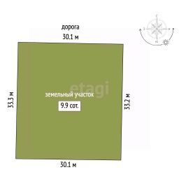 Идеальная прямоугольная форма (33*30 метров.). Что позволяет максимально эффективно использовать площадь для строительства дома.