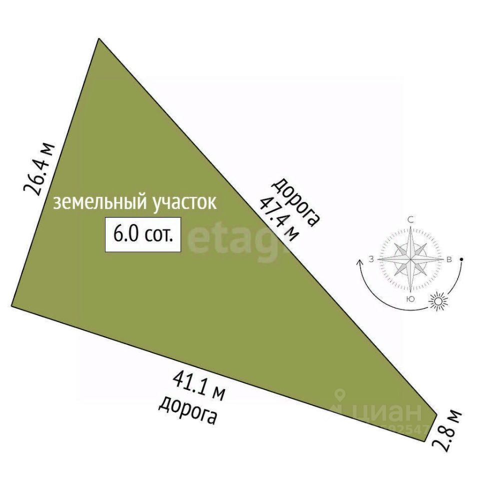 Продается земельный участок площадью 6 соток.