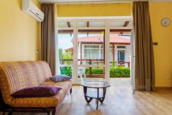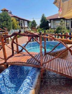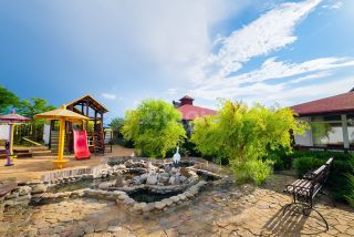 Каждая комната оборудована мебелью и техникой, подведен интернет. Вся мебель и техника остается новому владельцу. На территории есть свое кафе, большой бассейн с подогревом воды, джакузи, мангальная зона, прачечная, детская площадка. Установлено видеонаблюдение. Есть оборудованная автостоянка.