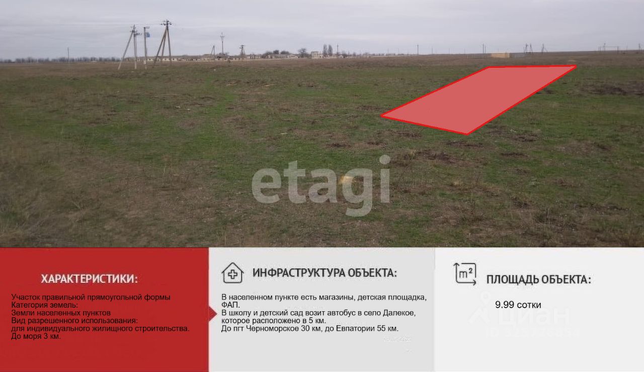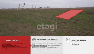 Продается отличный участок правильной формы, площадью 9.99 соток, в с. Владимировка, Черноморского района.