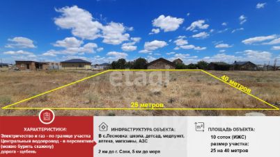 Продается Земельный участок общей площадью 10 соток, в новом активно застраивающимся массиве с. Лесновка, Сакский район, Крым!