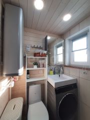 Дом полностью оборудован для комфортного проживания. Есть сауна с дровяной печью "ЕРМАК". Кухня-гостиная, гардеробная с раздвижными дверями, совмещённый санузел , мансардное помещение.