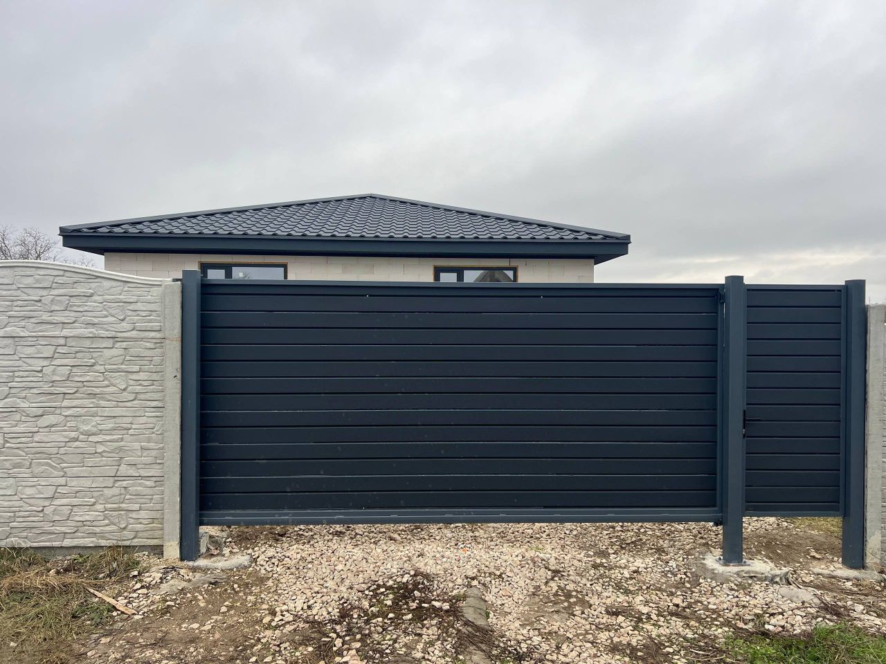 Территория ограждена, есть откатныe ворота 5м.