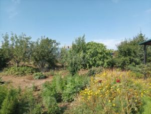 На участке есть беседка и подсобка для инвентаря. Высажены цветы и плодовые деревья, яблоня, шелковица, инжир, гранат.
