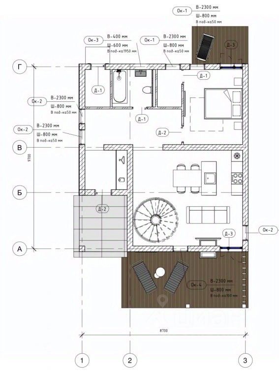 Во всем доме установлены витражные окна, благодаря которым безпорожковая система.