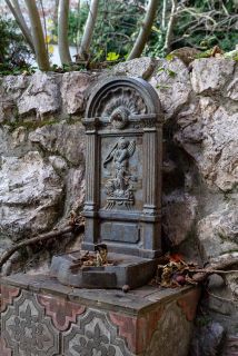 Ухоженный сад с хвойными (голубые ели, кипарисы, туи, можжевельник) и плодовыми деревьями.