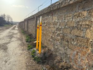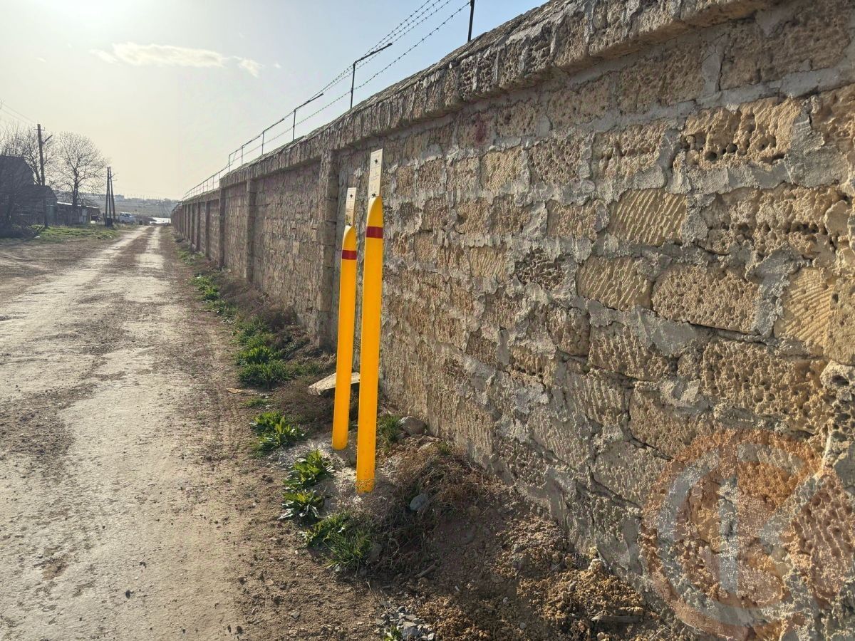 Участок ровный,по всему периметру огорожен каменным забором,свет,газ,центральный водопровод по границе участка,также по границе находятся жилые частные дома.