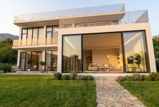 Панорамные энергосберегающие окна из теплого алюминия с напылением Солар, раздвижные порталы.