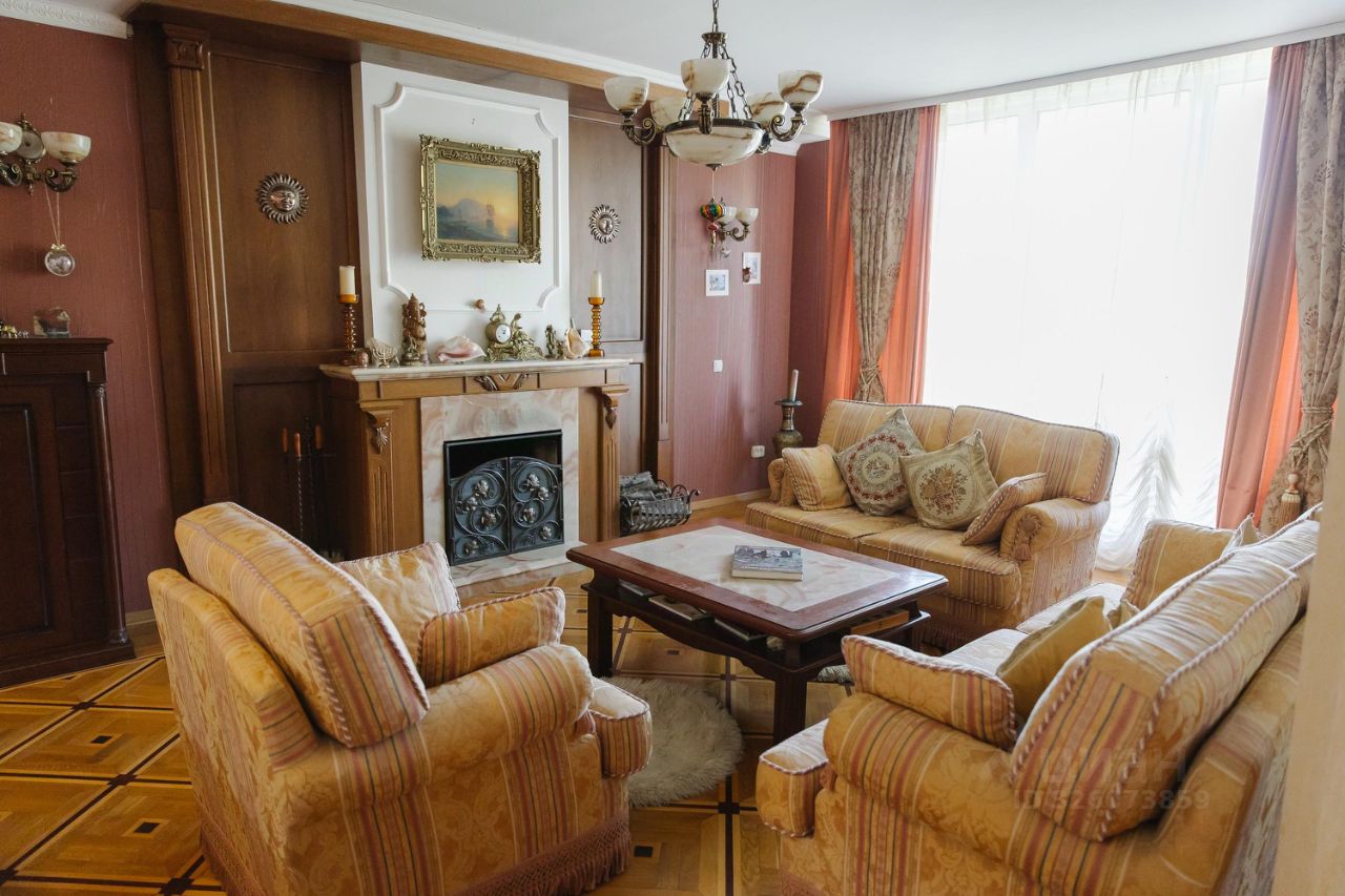 Земельный участок 42 сотки. Жилой дом: общей площадью 257 кв.м, 3 спальни, 3 с/у, кухня, холл, гостиная, кабинет, сауна, бассейн, волейбольная площадка, зоны отдыха в доме и на улице, дом для гостей и домик для охраны, гаражи. Много всего нужного для загороднего дома. Все столярные изделия, кроме покупной мебели, выполнены в прежние времена из массива высушенного дуба. Покупателю остается все, кроме картин, двух диванных групп, мебели одной спальни и некоторых предметов по согласованию.