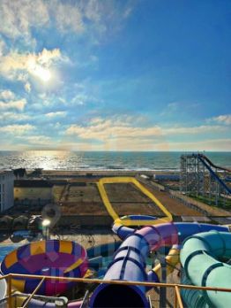 В шаговой доступности пологий благоустроенный пляж, аквапарк и магазины.