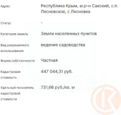 Продается участок в Лесновке, 6 соток, садоводство. В этой нарезке уже есть электричество, будет проведена центральная вода и газопровод. Участок подойдет под строительство частного дома, рядом г. Саки.