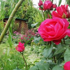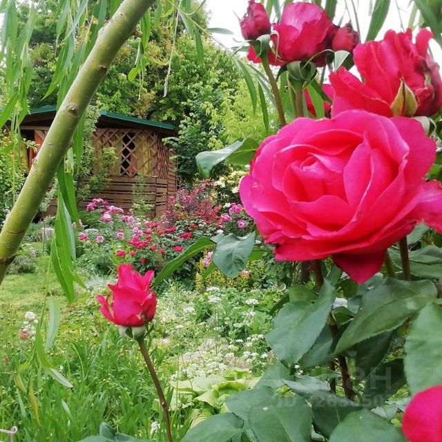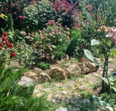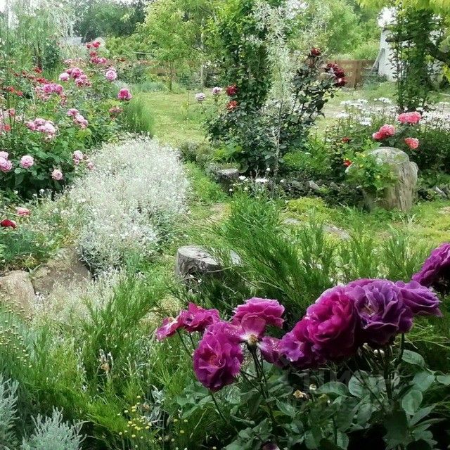 На участке есть сад как с декоративными растениями (около 100 сортов роз,хвойные), так и с фруктовыми растениями (более 30 деревьев), есть отдельно территория для огорода, а так же свой собственный виноградник с техническими и столовыми сортами.