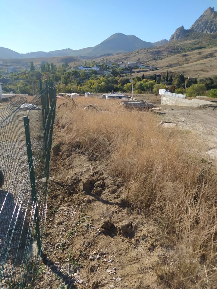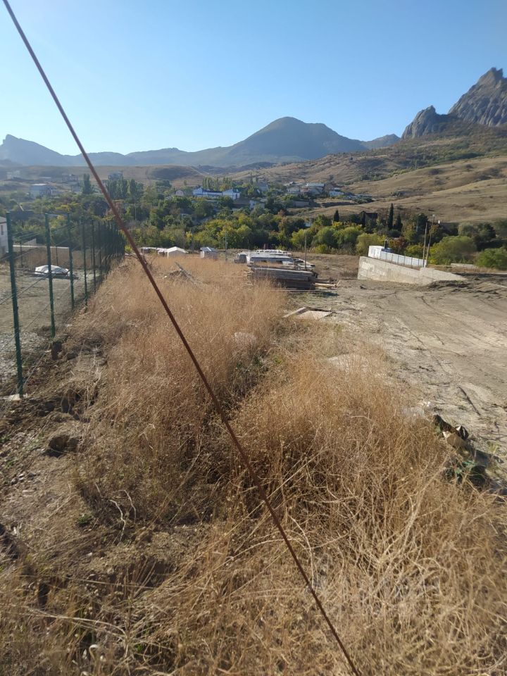 ИЖС, 8 соток, на возвышенности, сухой, с небольшим уклоном, прямоугольной формы у самого подножия горы Кара-Даг. Шикарный вид на горы, целебный воздух.