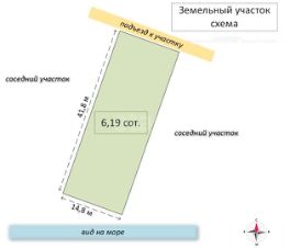 Продаётся ровный земельный участок площадью 6,19 сотки в поселке Миндальное под Судаком на возвышенности с шикарным видом на Черное море.