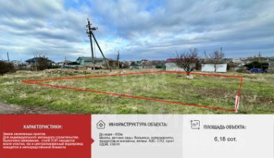 Продается земельный участок в курортном поселке городского типа Черноморское площадью 6,18 соток.