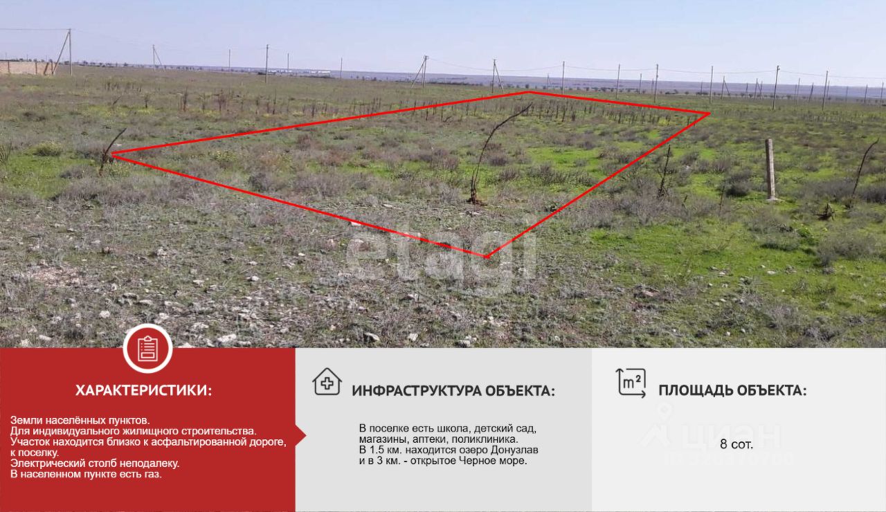 В 1.5 километрах находится озеро Донузлав и в 3 км - открытое Черное море.