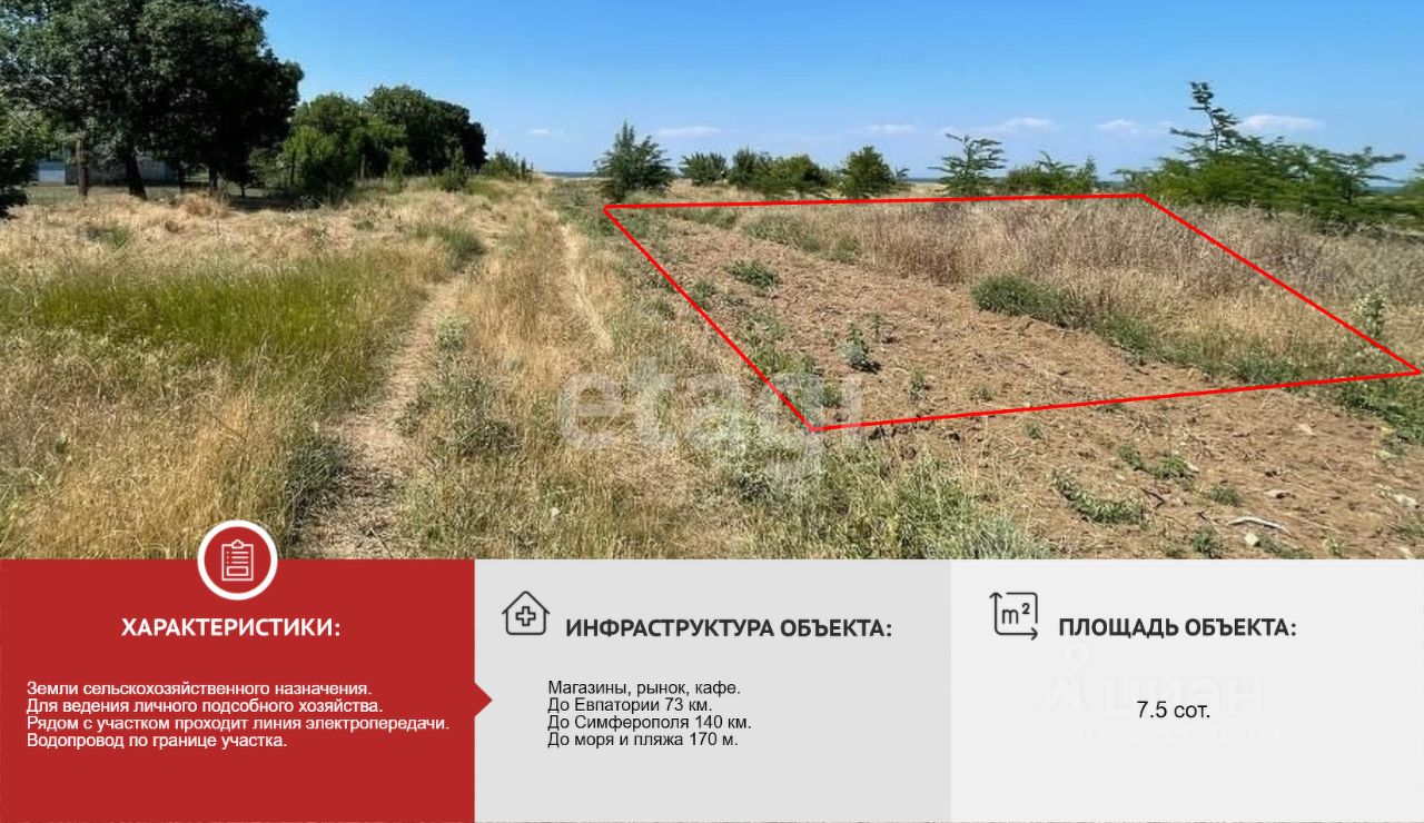 Продается земельный участок 7.5 соток в с.Стерегущее недалеко от знаменитой Бакальской косы, на берегу Каркинитского залива.Рядом расположен мыс Песчаный.До Евпатории 73 км.до Симферополя 140 км.До моря и пляжа 170 метров.