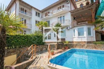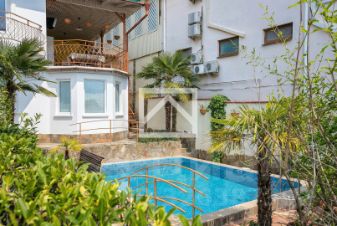 Арт. 123511639 Предлагается возможность купить уникальное домовладение с гостевым домом и бассейном, расположенное в живописном курортном посёлке Гурзуф. Объект отличается захватывающими панорамными видами на Чёрное море, гору Медведь (Аю-Даг) и легендарные скалы Адалары, создавая атмосферу уединения и комфортной жизни у моря.
