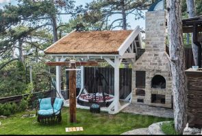 Уютный двор площадью 100 кв.м с беседкой, мангалом и зоной отдыха.