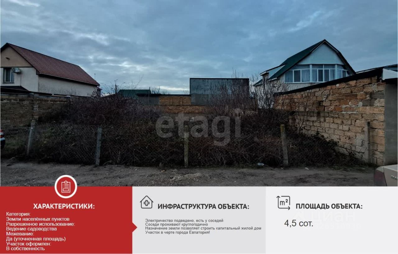 Продам отличный земельный участок площадью 4,5 сотки в черте города Евпатория!