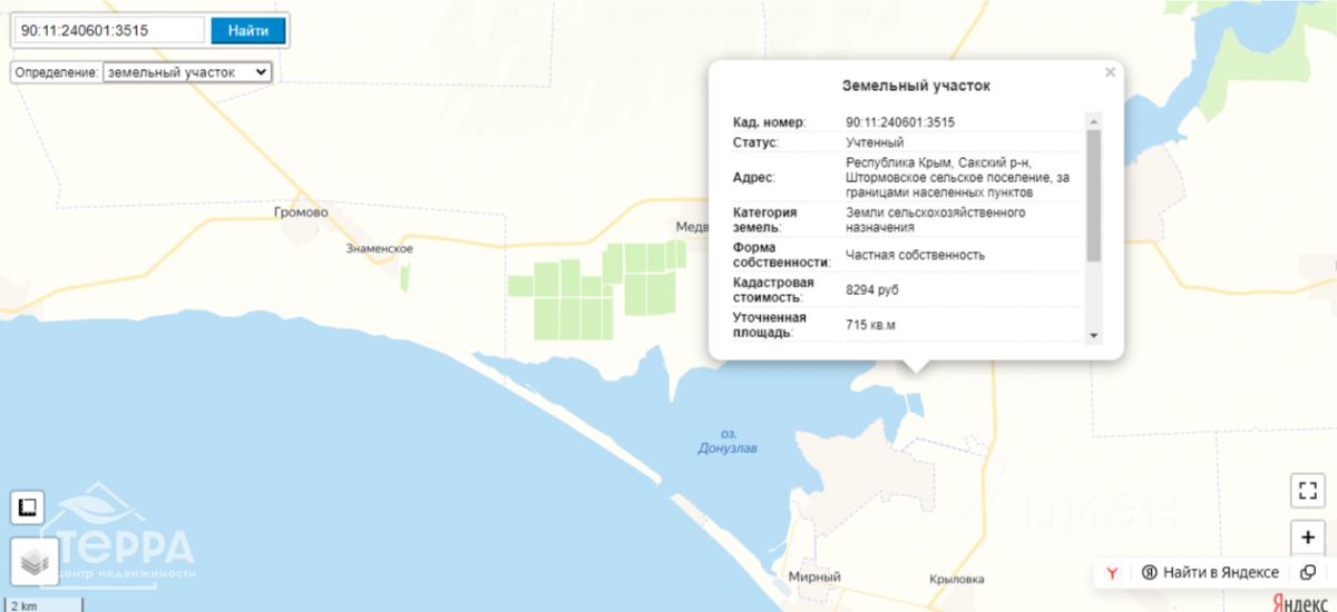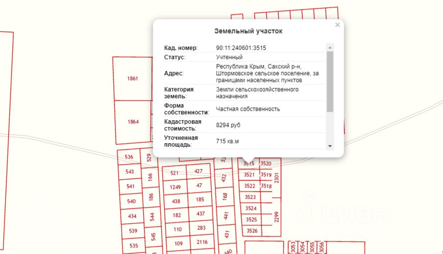 Кадастровый номер: 90:11:240601:3515 рядом ещё 6 участков.