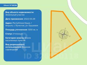 Продается земельный участок в селе Лучистое, (Алушта) улица Грушевая.