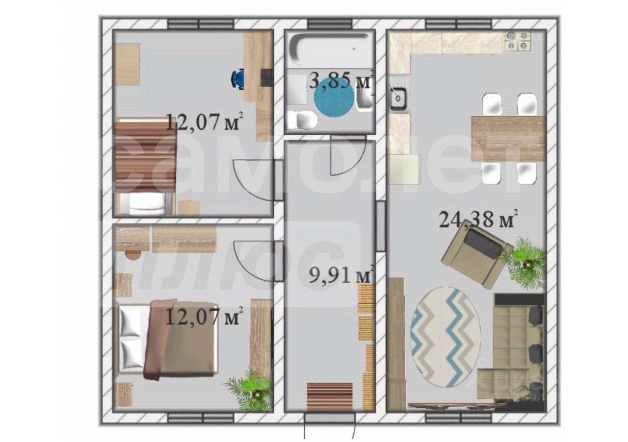 Дом площадью 66 кв м расположен на участке правильной формы 8 соток.