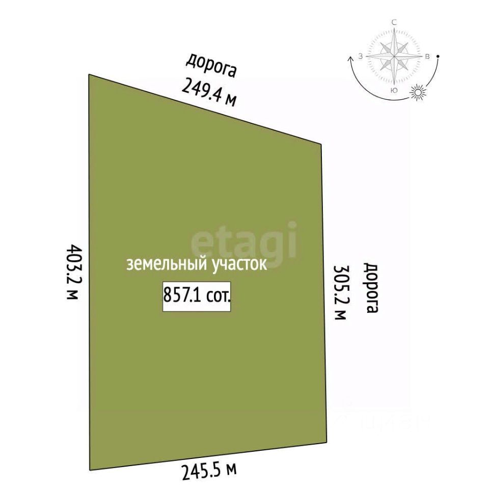 Участок площадью 857,14 сот. ровный.