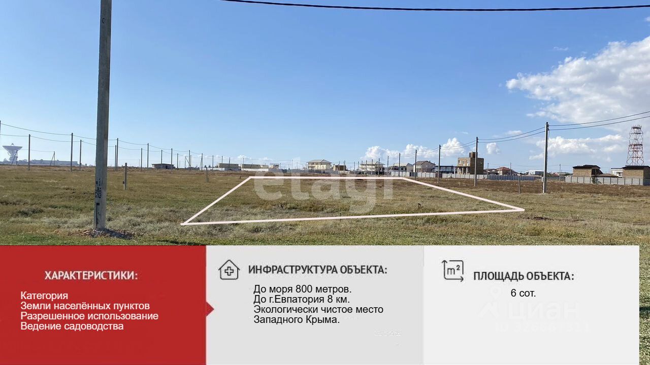 Продается участок 6 соток в Молочненском сельском поселении, Сакского района, Республики Крым.