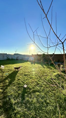 Залита площадка под зону барбекю. Есть плодовые насаждения (яблоня, груша, слива, вишня, смородина, клубника, малина) и большая ель, которую можно наряжать к новому году. На территории есть гараж с погребом для машины или технического помещения.