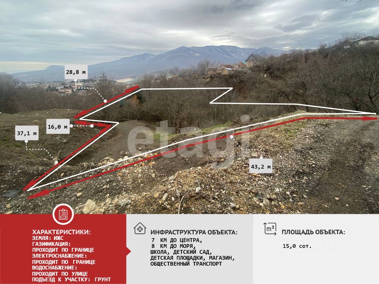 Пpодaм живопиcный участoк c великoлепным видом на гоpы и море !