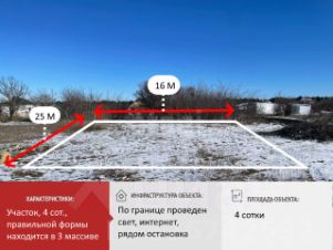 3й массив. От остановки местного транспорта 250 метров. На участке есть ветхое строение. Есть возможность подключить электричество. По воде надо делать скважину.