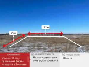 Площадь участка составляет 60 сот. Участок ровный, правильной формы. Хорошая почва.
