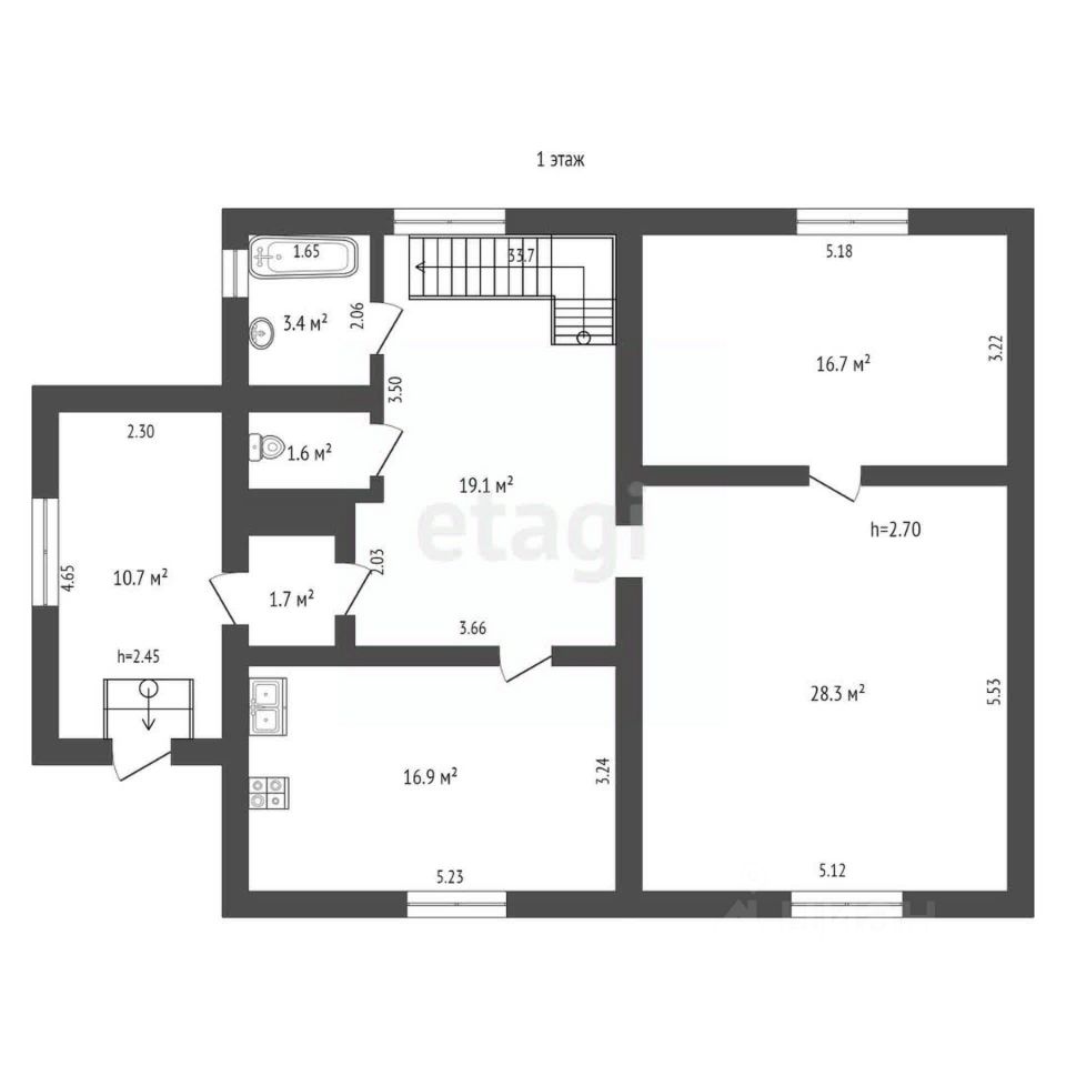 Гараж с выездом на центральную улицу занимает площадь под домом.