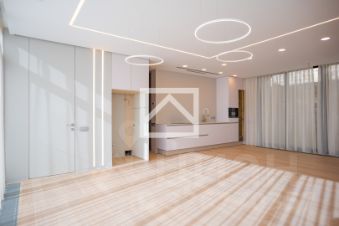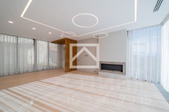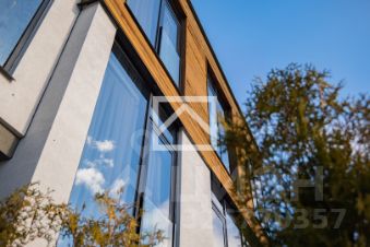 Панорамное остекление с восточной, южной и северной сторон наполняет дом естественным светом. Энергосберегающее напыление сохраняет тепло, а французские балконы добавляют ощущение простора.