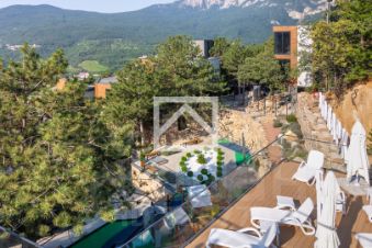 Арт. 58259186 Станьте владельцем таунхауса с дизайнерским ремонтом и эксплуатируемой кровлей в премиальном коттеджном посёлке "Экопарк" в Ялте: живите в собственной резиденции с панорамными видами на море, горы и город.