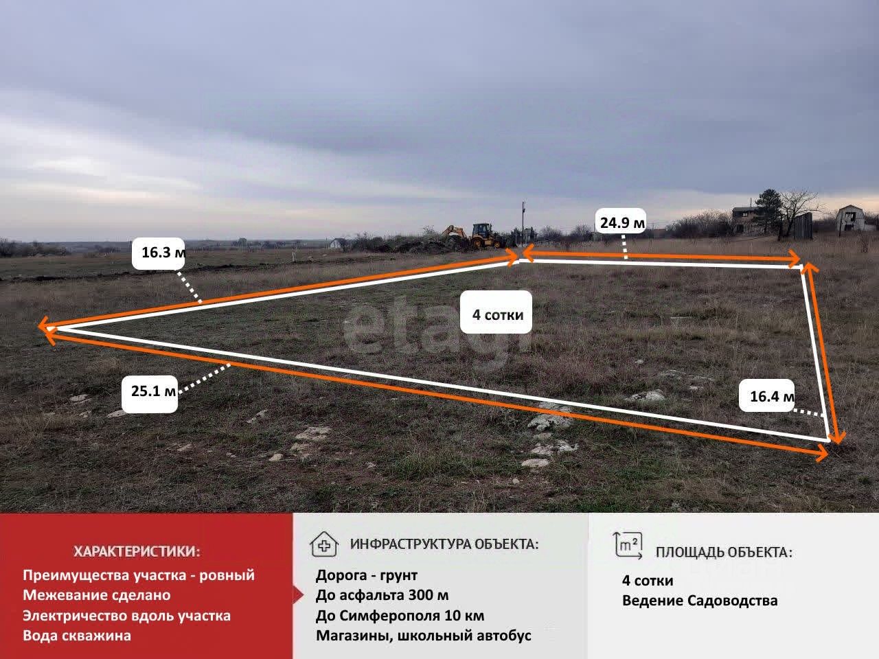 Продается участок 4 соток в активно развивающемся пригороде Симферополя.