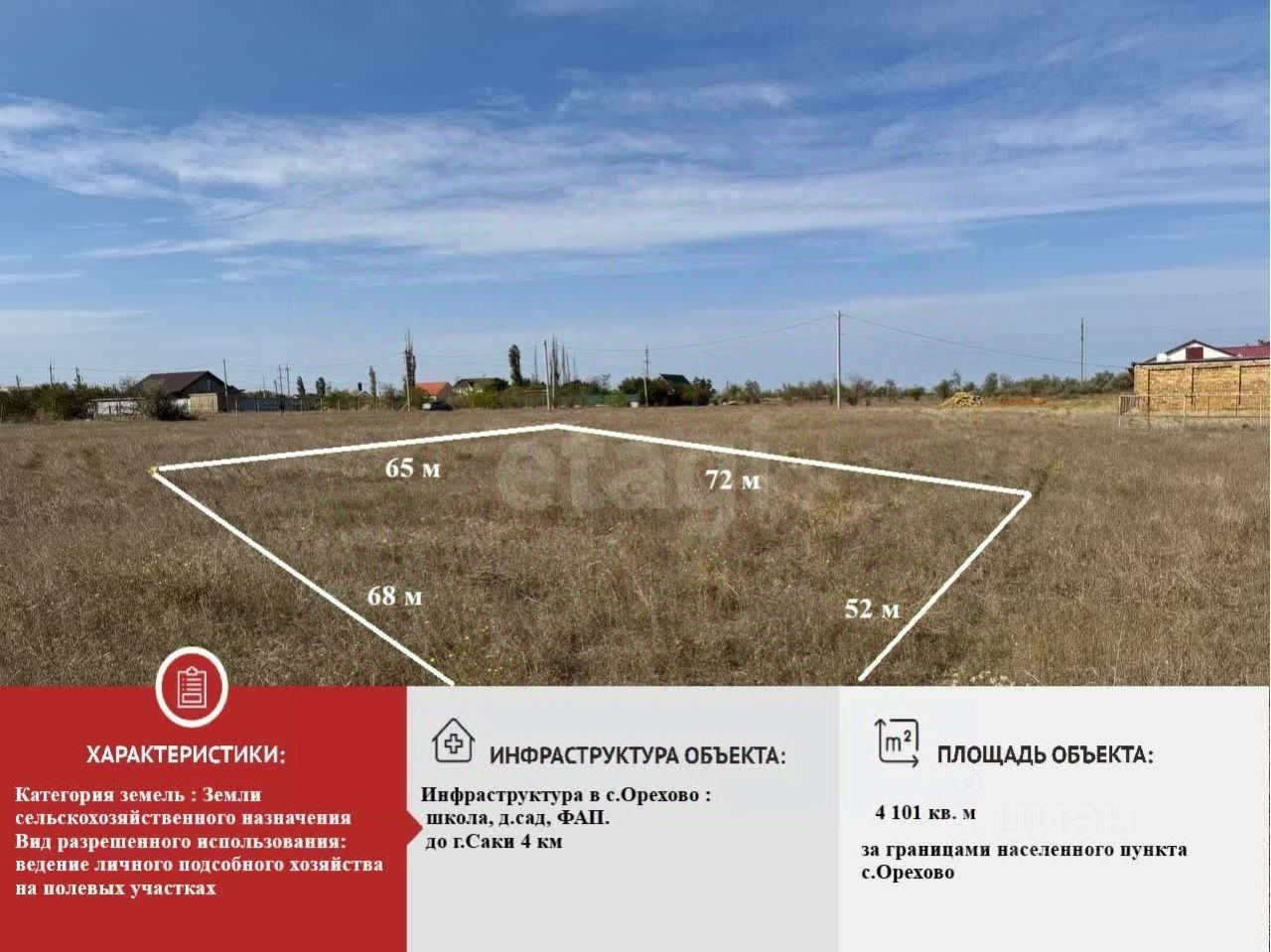 Продаётся земельный участок 41 сотка (ЛПХ) в посёлке Орехово Сакского района, Крым.