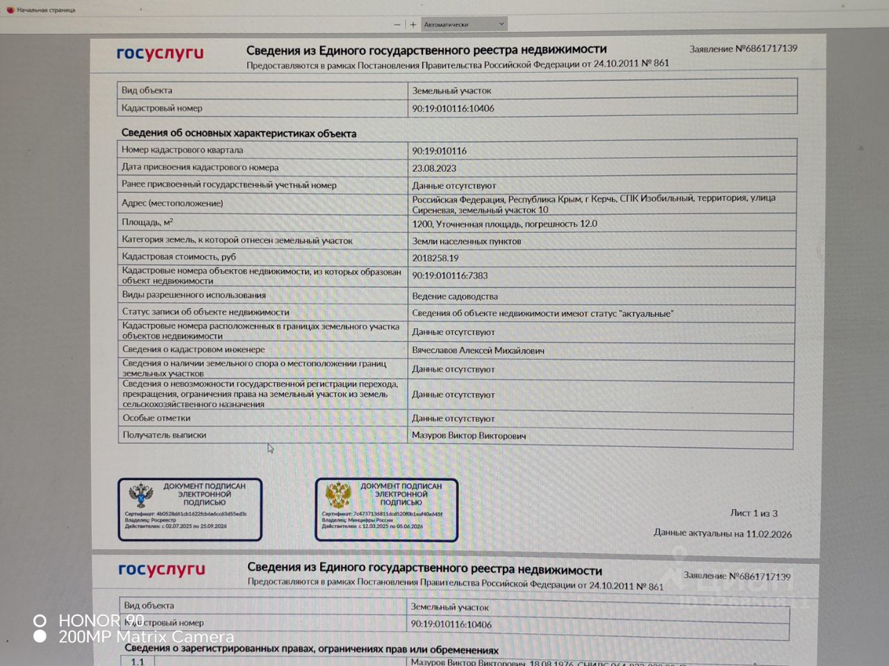 Земельный участок 12 соток, 10 мин.до моря, вид на Крымский мост. Участок правильной формы, с ровным рельефом (ландшафт: земля, без присутствия камней), без строений. Назначение земель: Для садоводства, ИЖС. Документы на право собственности РФ. Возможна прописка. Коммуникации: Электричество (счетчики), есть возможность подключения к центр. водопроводу, рядом пожарный водоем.