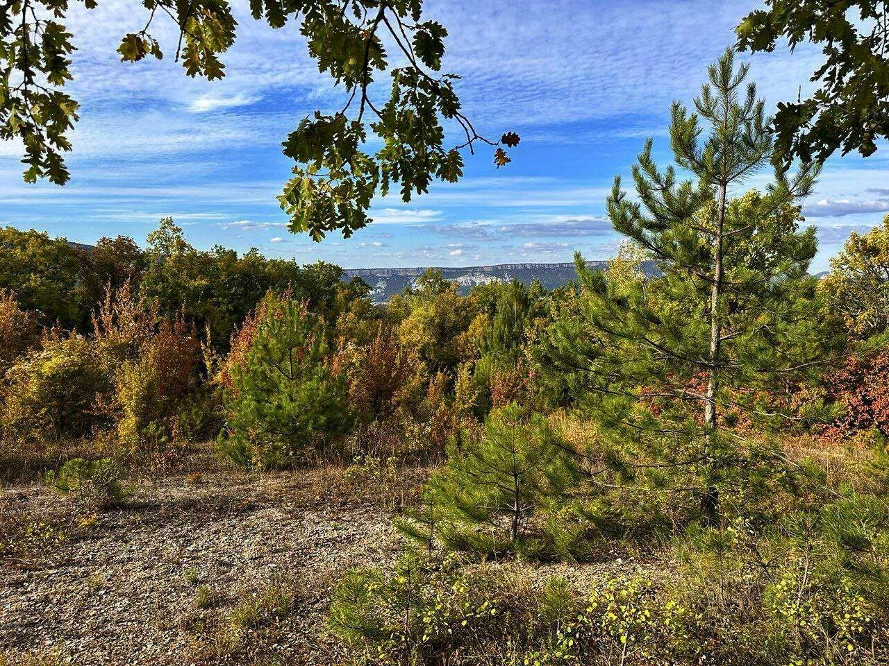 Участок частично занят лесным массивом хвойных пород. Со всего участка открывается вид на горы.